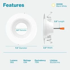 - β Follow our installation guide for a quick and easy setup of this recessed customizable lighting. Suitable for damp locations. Install this LED in your 5β or 6β recessed can for bright light in kitchen, living room, bedroom, bathroom, and common areas of your home or office. β ADJUSTABLE – Fits 5″ or 6″ housing.