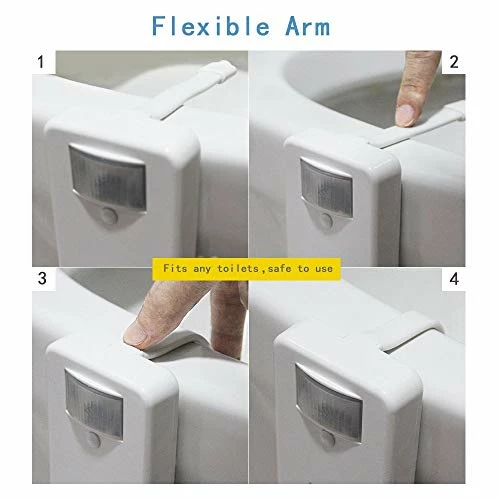 - EASY TO INSTALL – Designed with a soft and flexible arm that can be bent easily to attach any type toilet bowl without outlet socket, with advanced low power tech, a new set 3 AA batteries( not included ) can last up to 12 months, depending on the frequency and brightness.