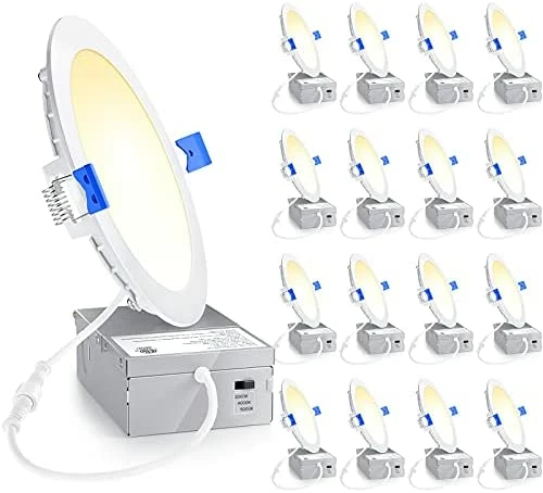 - ?γHigh BrightnessγThe 6-inch slim lights use the new generation of LED chips with higher lumens and lower power. 1050LM consumes 12 Watts, which equals to 110W incandescent lamp, saving you up to 88% in energy costs. Frosted LED lens for anti-glare and scratch-resistant.