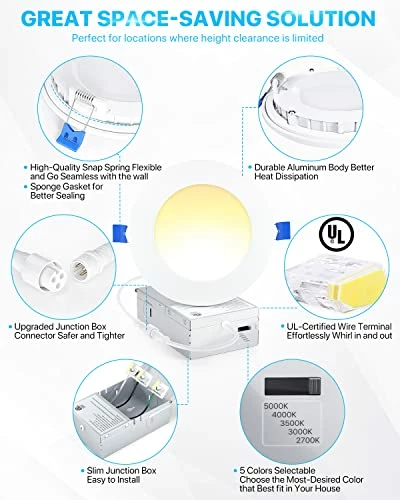 - ?γEasy InstallγThe low profile recessed lighting is suitable for retrofit and new decoration: Cut a hole in ceiling with 1:1 hole template; Connect the Jbox to the cable; Use spring clip to fix it on the ceiling. Hassle-free, the installation can be completed in minutes.It only requires as small as 2 inches ceiling spaces, fits various ceilings, and joists. Recessed can is no longer a limitation for your choice.
