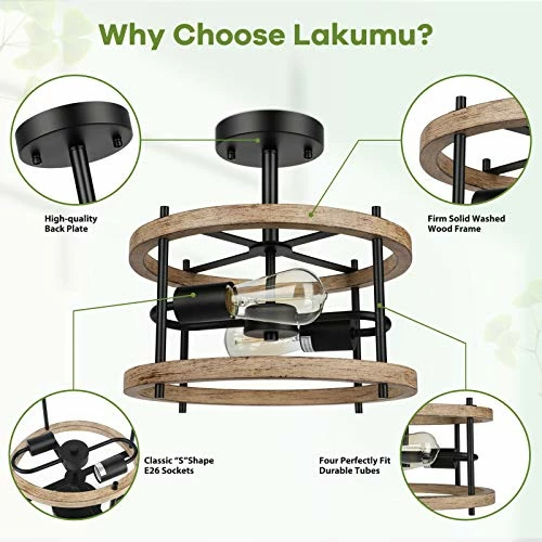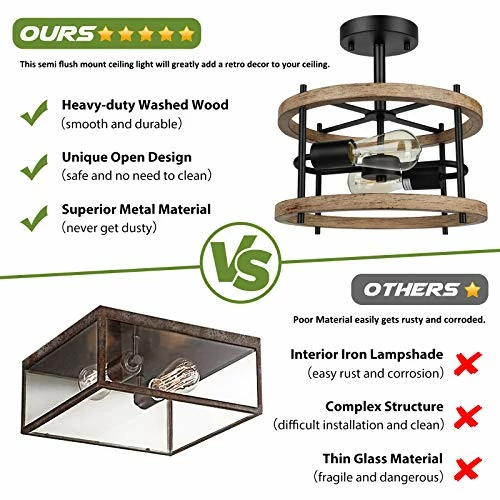 - ?【Exactly Easy to Install】: This wood semi-flush mount ceiling light has no difficulties in getting it together, only 6 simple steps, clear instructions included in the package and pictures for the listing.?? (Warm tips: please turn off power before installation on your ceiling and read the manual carefully, we advise you contact professional electricians to operate for safety purpose).