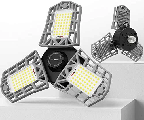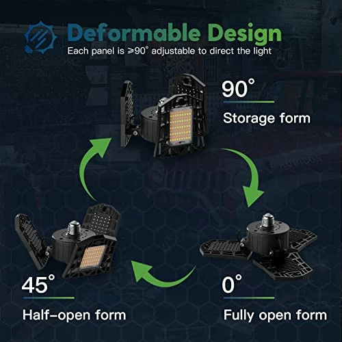 - Humanized Deformable Design: Unique wide-angle garage lighting design with three 90 degree adjustable panels, which can provide the best 360Β° indoor lighting experience.