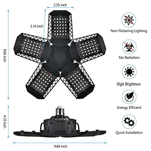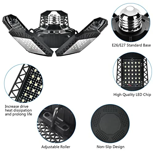 - ?γEasy InstallationγNo need for professionals, just screw in like a light bulb, support E26/E27 sockets, thanks to its high-end LED chip, the transformable garage light has a long life of at least 50,000 hours