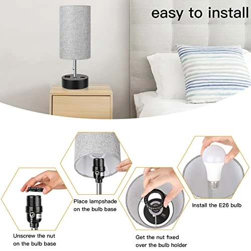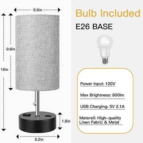 - γMinimalist Design for Homeγ The USB table lamp with the minimalist design, makes it be a perfect addition to your home.The fabric shade and black metal base is perfect to decorate anywhere at your house. It’s a great choice to take this night stand lamp as a gift for your friends, family. A perfect bed side lamp for living room, bedroom, study room, kids room, den, nursery.