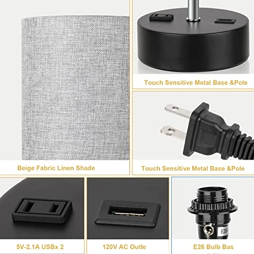 - γUSB Fast Charging Ports & AC OutletγThe modern table lamp for bedroom euipped with USB charging port(5V/2.1A), and 2-prong AC outlet (120V) for fast charging, getting your phones, humidifier, kindle, headsets, speaker and other electronics fully charged. And what the greatest advantage of our nursery lamp is that whether the lamp is on or off, these charging ports can still keep working.