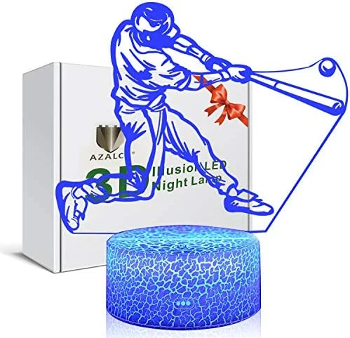 - 3D Illusion Night Lamp, 16 Color change, touch white crack base, power by AA batteries