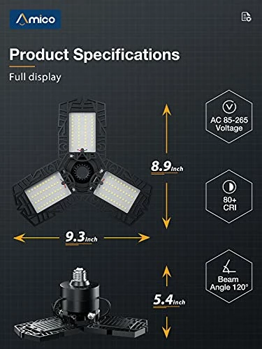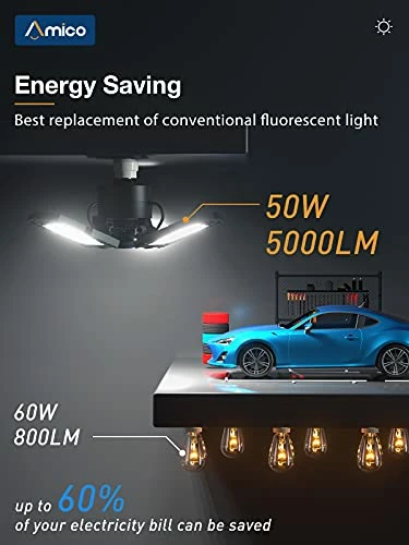 - Super Bright Garage Light: With 3 ultra-bright adjustable LED light panels and 120 Pcs top quality chips, each light will provide 5000 lumens brightness, equvis to 6 traditional light bulbs, save up to 60% on your electricity bill.
