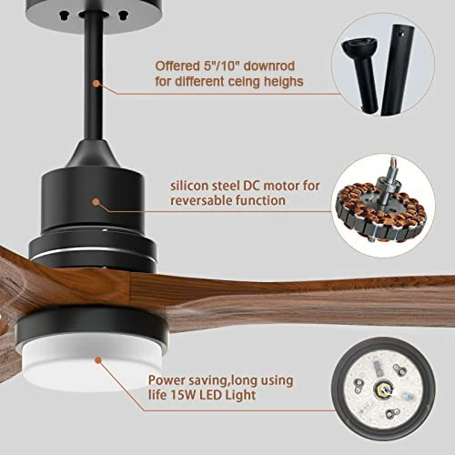I purchased two for our outside covered patio. Installation went very well and they work perfectly. Very quiet and like the 6 speeds and light/color settings. Especially like the design with the 3 wooden blades. I set them up to work from the same remote – which was simple. Had one simple question to ask seller and they got back to me quickly. Highly recommend.