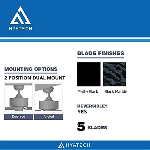 - DUAL-FINISH REVERSIBLE BLADES: The style is up to you! 5-reversible black/black marble blades, this ceiling fan comes with a different finish on each side of the blades. Pick the finish that best fits your space!
