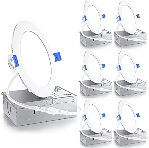We replaced two recessed fluorescent strip lights original to our 1964 house that only worked when they wanted to (even though the ballast was replaced). I love LED recessed lights after seeing the Ensenior lights installed on an Instagram account I follow.First I went to a big box store and found recessed high hats, came home looked inside the box and decided to order these recessed lights from Amazon. Why? 6 lights for the price of 4. The wiring is easier to install on these. The light is excellent. Our electricians loved installing them. Lutron Dimmer works great. Now I have light to cook.