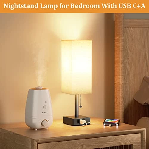 - γ?Upgraded Small Table lamp with USB C+A PortsγTable lamp for bedroom built in USB C & USB ports (5V/2.1A)for fast charging, can charge your phone, kindle, tablet, watch and other devices no matter the side lamp is on or off.