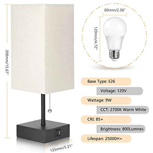 - βοΈγEnergy-saving LED Bulb Includedγ-No need to buy bulbs separately, we are equipped with a 9W A19 LED bulb. The 800Lumen 2700K warm white bulb matches with the linen fabric lampshade to create a special warm and romantic atmosphere. Equal to 60W incandescent bulb, saving up to 90% on your energy bill, with no flicker or buzzing. Safe for familyβs eyesight.