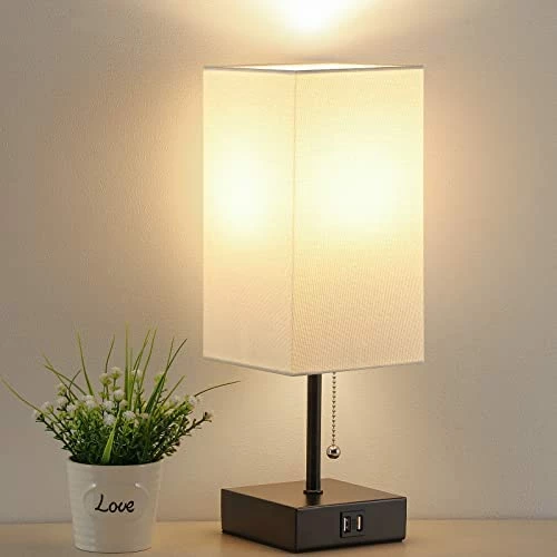 Nice having a couple USB ports to charge my phone and headphones, a perfect size for my small nightstand and aesthetically pleasing to the eye. The bulb that comes with it is moderately bright, but easily replaced if thatβs not your thing.