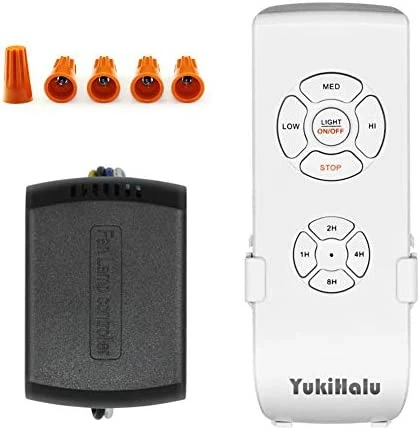 So the house we bought has a very nice ceiling fan light combo. But there was no way to turn on the fan, just the light. Opened up the cowl at the top to see if there was an existing control but no. So this looked like it would work and was less expensive than a brand new remote control ceiling fan (although I really liked the tropical palm fans).Another discovery I made was the ceiling fan had two levels of bulbs including 4 hidden above the fan. Those never turned on. So installed the control. Hot and neutral on the input. Output has separate wires for fan and lights and neutral and an antenna to receive the RF control signal. So the color of the wires on the ceiling fan actually matched the color code on the control box. How rare is that? But there was a yellow wire from the fan left over which I traced to the top hidden bulbs with an ohmmeter. OK so connected the two sets of lights together and powered it up. All ok. Lights turn on right away when you turn on the wall switch. Think of that as your master control. You leave the room and you can turn off the lights and fan both. The control remote has separate buttons for the light (not dimmable) and the fan (3 speeds). It also has a timer you can set for 1 to 8 hours but I’m not sure how you would use that function. I only want to have light and be cool for X hours then darkness and no fan? IDK. The antenna needs to stick out beyond the metal cowl or it wont receive the signal from the RF remote. I didn.t like the yellow color against the ceiling so I trimmed it and added about 8 inches to match the color of the ceiling. Now its unnoticeable. They were smart and capped off the antenna with a little blob of plastic so you dont try to hook it up to an AC line (very tempting as I had an extra yellow wire and the antenna was yellow but I resisted that temptation. All works, I have LED bulbs on the way to replace the 240 watts of incandescent bulbs it had and its happy camper time.