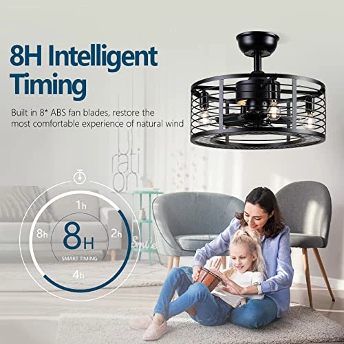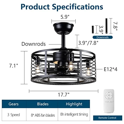 - 【Unique looks and safe design】This industrial/rustic caged ceiling fan looks very beautiful,it is enclosed with 8 ABS blades hidden in the cage to avoid accident caused by getting involved in the blades ,so it’s much safer than traditional fans.