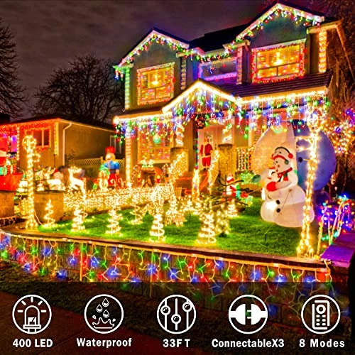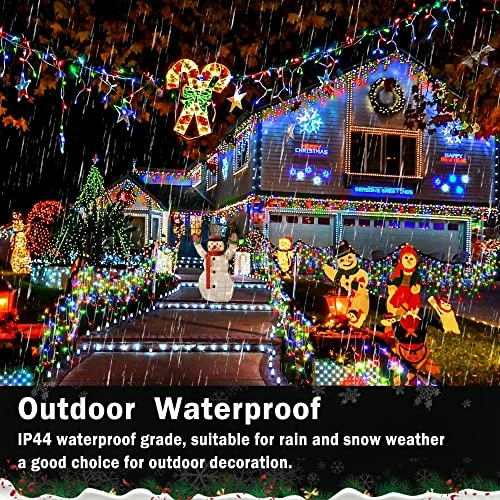 - ใUL Listed Waterproof & Energy SavingใWith high quality Leds and strings,theyโre UL-rated for outdoor use and hold up great during rainstorms and windy days during testing.(The plug is not waterproof ,please keep it from water).Besides๏ผLED Christmas lights are brighter and 90% energy-efficient,the amount of energy they consume is quite minimal for the length and amount of brightness they emit,which is wallet friendly!