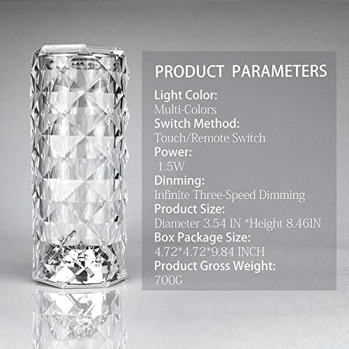 - FASHION APPEARANCE:New concept diamond design is a simple and modern luxury experience. It shines like a diamond without losing its special 3D technology. The refraction crystal lamp is bright and colorful. The exquisite crystal table lampshade adopts diamond cut surface to show the gorgeous temperament, decorate your living room and create a comfortable and romantic atmosphere