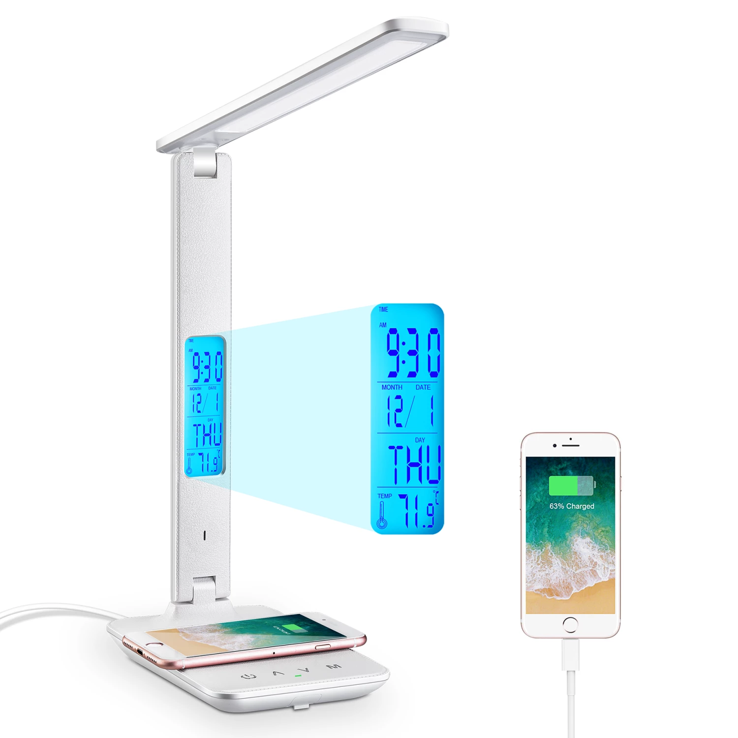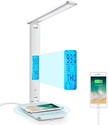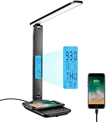 - Special Feature: Wireless Charging, USB Charging Port, LCD Screen, Adjustable, Dimmable, Foldable, Eye-caring, with Clock and Calendar Functions See more