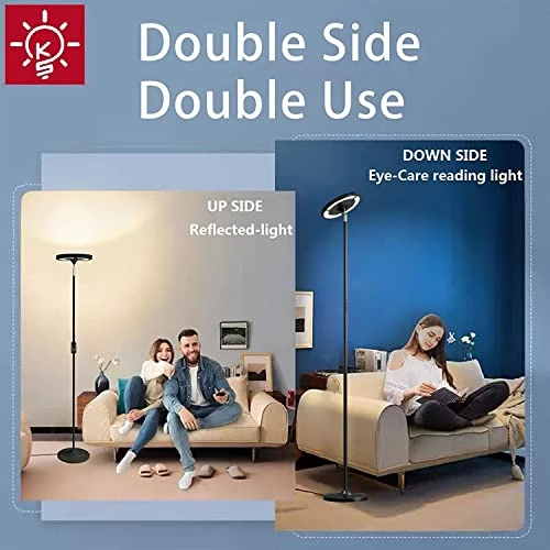 I needed a floor lamp that also had a down-facing light. My other floor lamp only had the up-light, which did not provide enough light for my living room, especially for reading. Not only does this have both lights, but the top one has different color temps for the white light, as well as different colors. There are also different scenes for the colors that can be controlled through the app; great for ambience. The bottom light is sufficiently bright and I use it often for reading. The remote is simple to use, thereβs a on/off on the pole, and you can control further functions with the app. Great value for the money. Iβm probably going to buy some for the kidsβ rooms.
