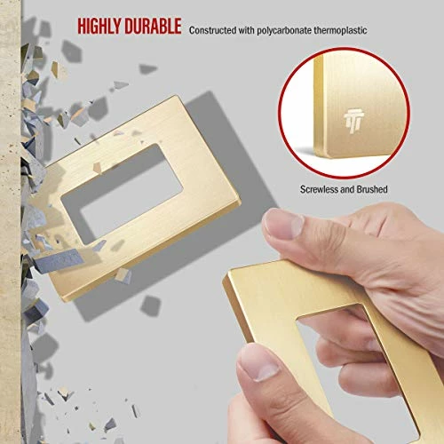 - Enhance the appearance of any room with an elegant brushed gold color decorator wall plate; seamless design means no visible gaps between the wall plate and the wall