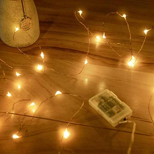 - *SUPER BRIGHT 50 LED STRING LIGHTS: These Best 50 LEDs Micro LED Battery Operated String Lights Lamp are perfect for using as a lighting addition to any decorative project. delicate copper wire hosts 50 very small LED bulbs that are about size of the rise grain and are intensely bright. With steady 360 degree viewing angle they illuminate in every direction.
