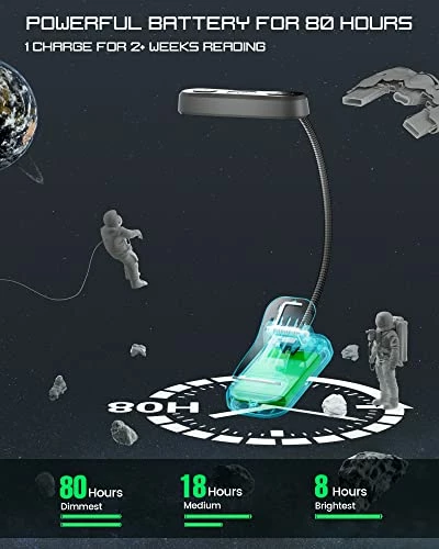 - [Powerful Battery with Superior Quality for 80 Hrs] All Glocusent reading lights are USB-C rechargeable which is a thoughtful design for senior users. After one full charge, your pleasant reading time ranges from 8 to 80 hrs with a step-down dimming. The battery’s quality is guaranteed by a certified safety sheet (MSDS) for your safe usage.
