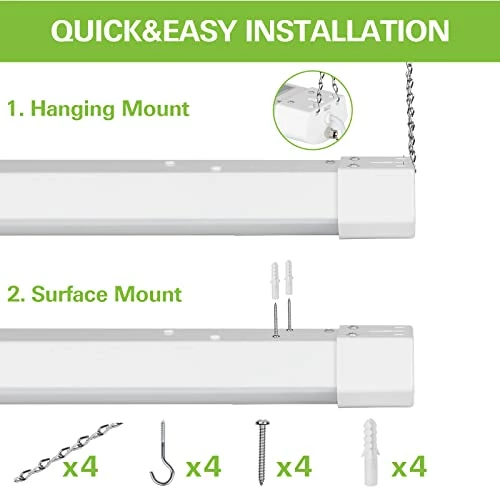 - β High Quality – ETL certified for better quality, safety and reliability. Turns on instantaneously, no more waiting. This long-lasting LED shop light provides up to 50,000 hours of light before any maintenance is required.