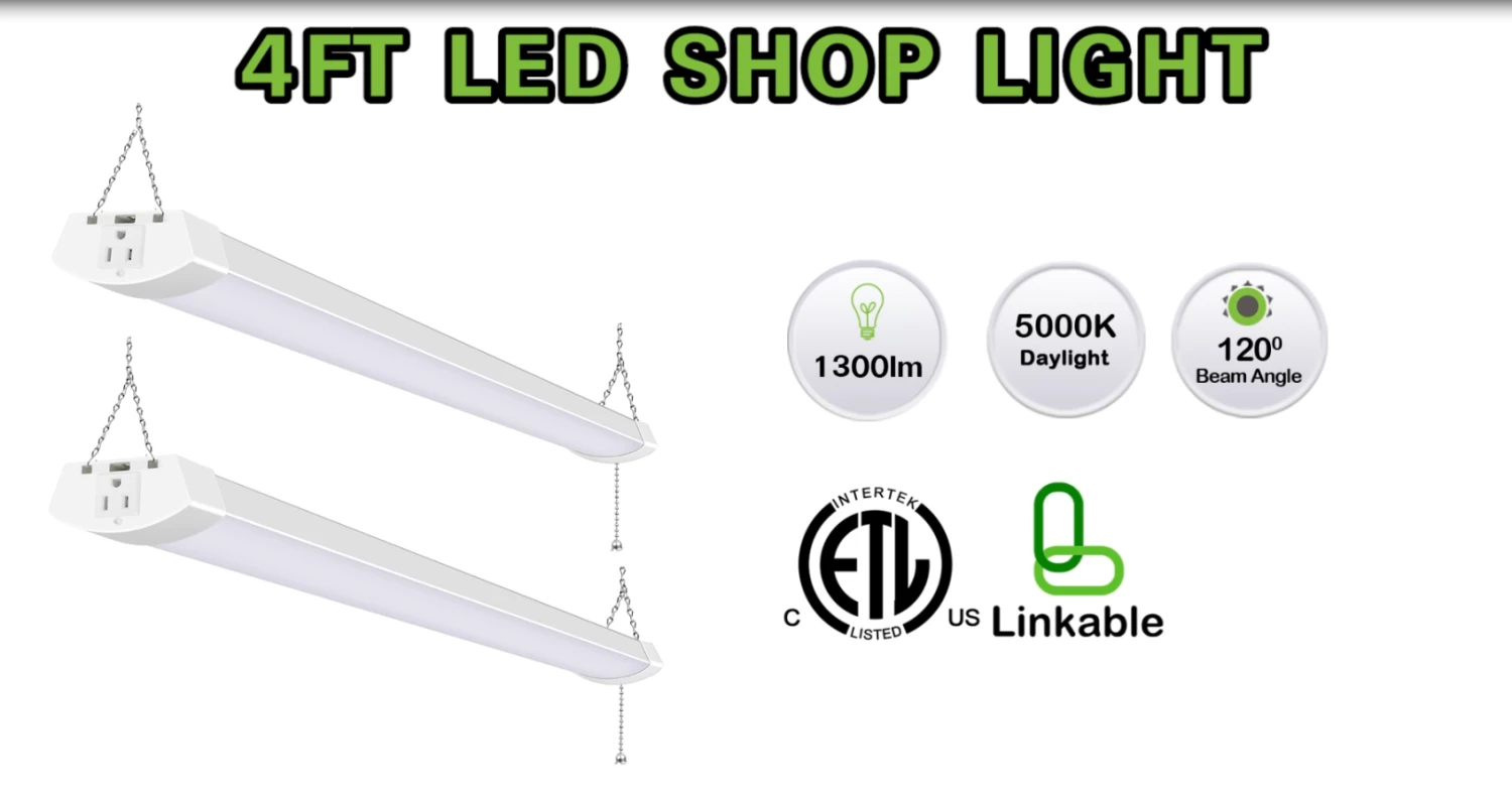 - β Linkable – 4ft linkable shop light use plug connection to connect up to 3 pcs together in your garages, workshops, workbench areas, storage areas, warehouses, basements, equipment rooms, etc.