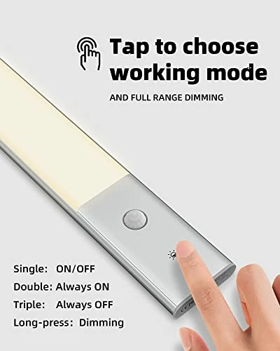 - γ3 Cycle Modesγ Get the most out of your motion sensor light indoor, use Auto Mode for general purposes, Always-On (double tap) for emergency situations and the Always-Off mode (triple tap) to keep it shut. (Note: The Auto-On Mode turns the under cabinet lights off every 30min to prevent unintentional power consumption.)