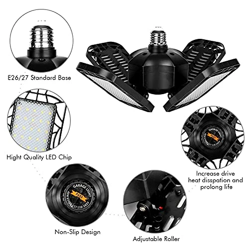 - Durable & Long Life: The garage lights are made with a safe premium PC housing, high-temperature resistant, and corrosion-resistant. which is good for heat dissipation and stability, and helps extend the life of the light. Over 65,000 hours of lifetime