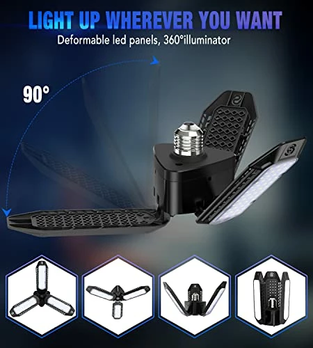 - ใEasy InstallationใThe light panel is easy to install. It does not require any tools or wirings for installation. The LED lights fit the E26 and E27 sockets. All that needs to be done is to screw on the light to the holder. The lights can be used in different places such as garage, warehouse, basement, barn, office, station, attic, workshop, display area or utility room, etc.