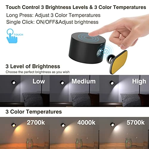 - 【360°Free Rotations & Memory 】The LED wall sconces with 360° rotation magnetic ball, so you can rotate the direction of the light source according to your needs. and the smart little desk lamp come will help you remember the last mode and brightness that you used for more convenient to next time.
