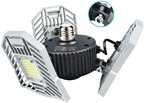 - βγAdjustable Design Bright LED Garage Lightγ- Unique wide-angle LED Garage Light design, each wing 90 degree adjustable, which can have a perfect garage lighting distribution curve according to your application, this will make the light cover 360Β° area.