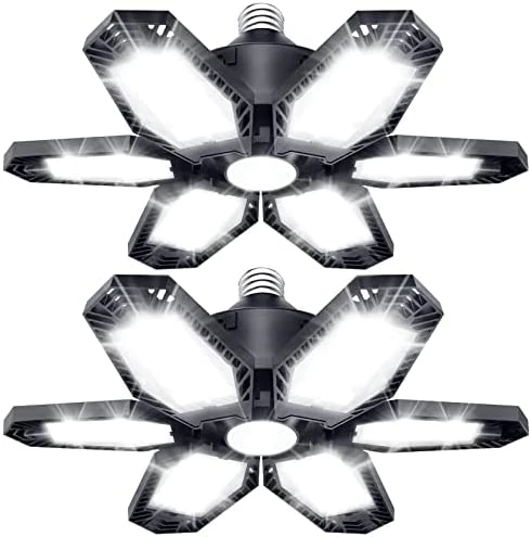 - βγTanbaby 2022 Upgrade Super Bright LED Garage Lightγ-We have adopted 6 lighting panels(5 deformable multi-position panels + 1 central circular lighting panel) to break through the dark zone.Each panel can reach to 90Β°, easy to adjust, way brighter than a standard bulb. It features LED technology with 240 PCS top quality diodes that total 240pcs LEDs, 15000 lumens ,CRI80+, 6500K daylight can give you the better indoor lighting experience.