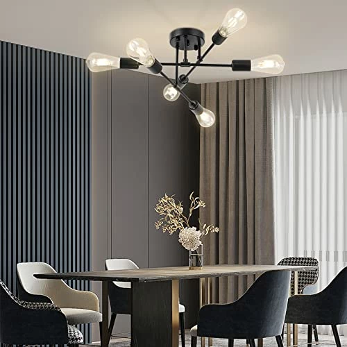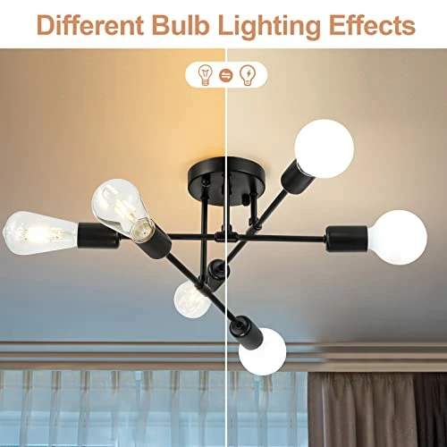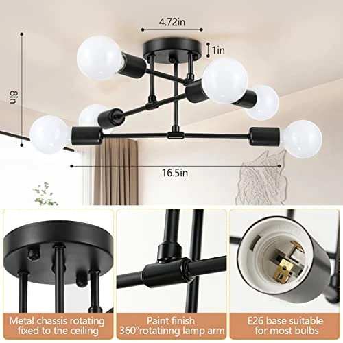 - γEasy to Installγ All 6 branches of the ceiling light are already wired. Only screw them on the base to fix it. The lamp arms can be rotated 360 degrees horizontally and adjusted to any angle you like.Dimension:W:16.5″, H:8”.