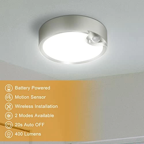 - γBattery PoweredγThe battery operated ceiling light is powered by 4 * D-cell batteries( Battery Not Included). Using energy-saving design to make the most of batteries. If it’s activated 10 times per day, it can last for 360 daysοΌSave Your BatteryοΌ