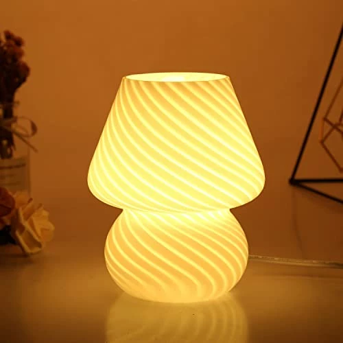 - [Material] Hand-Blown White Striped Glass, Murano, Bubble Streamline, High-End Ceramic Glass, Non-Toxic And Harmless To The Body, Very Suitable For Bedside Lamps