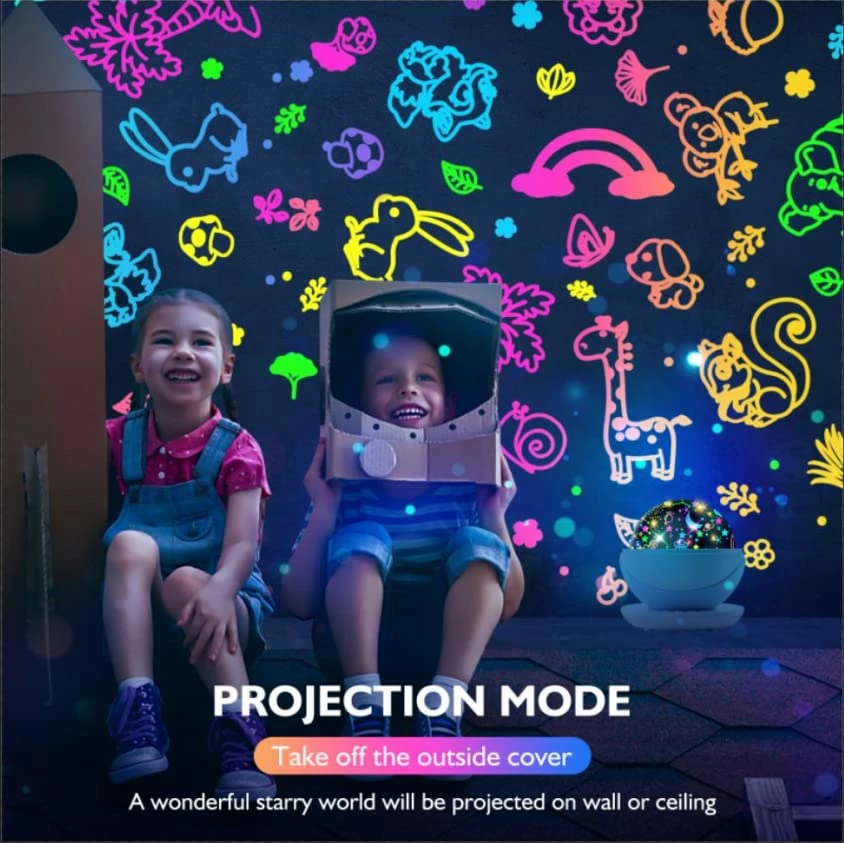 - Wonderful Gifts — Our kids night light for is not only a warm night light, but aslo a star projector lamp. A great companion to relax yourself and make more fun, comforting kids who are afraid to sleep in the dark. It is also an ideal decoration for birthday parties, festival celebrations, and so on, helping to create a warm and romantic atmosphere. A nice gift for your child, friends, and lover.