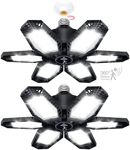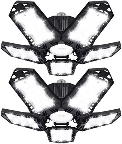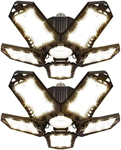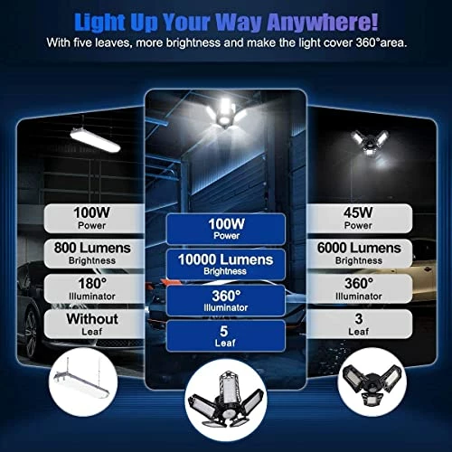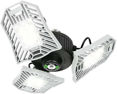 - ใAdjustable Design Garage LightใUnique wide-angle LED Garage Light design, five leaves are 90 degree adjustable design, which can provide a perfect wide garage lighting according to your demand, this helps you to make the 360ยฐ garage led light come ture.