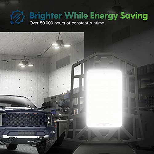 - 【Energy Saving, Stable and Durable】 Our linkable led garage light are made with a safe premium PC housing and come with a total of 120 cooling holes, high-temperature resistant and corrosion resistant, Safer to Use. Total 60w low power consumption, equivalent to a 300 watt incandescent bulb, our led garage light save up to 80% of electricity compared to traditional light fixtures.