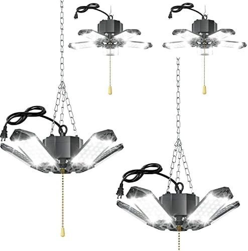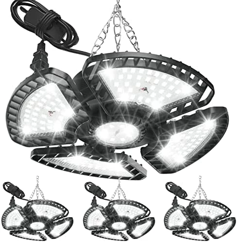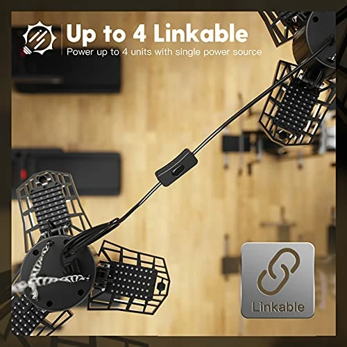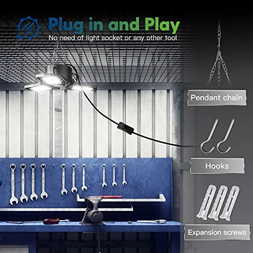- 【Plug in Linkable & Easy to Install】Connect up to 4 led garage lights together.Equipped with a 59 inch power cord, with the switch on the power cord. Super easy to install, just plug in and play. All the accessories come together in the package. No tools, no wiring and no professional electricians are needed. That means you can easily control with only one switch, supporting plug-and-play for a wider lighting area.