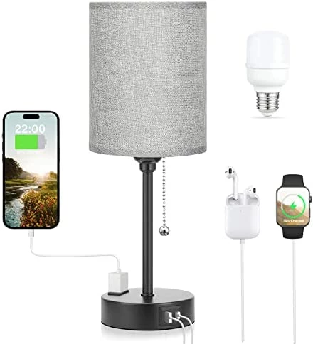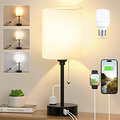 - ใ USB-C & USB Ports & AC Outlet ใ- The small table lamp for bedroom is equipped with a USB-C port, a USB port and a 2-prong AC outlet, which can stably maintain 5V 2.1A output, make your phone, tablet, kindle, watch, humidifier and other electronic devices are charged whether the night stand light lamp is on or off. Fully save your time and space.