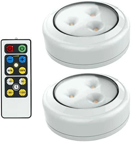These lights have changed the way I feel about my kitchen and life and bedroom closet on a fundamental level. Combined with a buttload of rechargeable batteries, theyβre an affordable, life-changing force to be reckoned with.I live in a “cozy” old house that has a “quirky” “vintage” kitchen with “basically one” light in it, although my wife believes horrible garish overhead ceiling lights are acceptable to turn on and use for lighting, which they aren’t. I’d rather not see shadows of rotting fly carcasses projected onto my possessions while I’m trying to eat my Dinty Moore over the sink like normal.So, for me, the hood-fan lights above our modern 70s electric coil stove (I’m told electricity is really catching on) are the only functional lighting the kitchen has…until now!Hot diggity, for 35 buckaroons per six pack, I turned my built-before-electricity black hole of a kitchen into a living-beyond-my-means, upper-lower-middle-class hipster coffee snob’s wet dream…affordably! No longer are the beauty of my Chemex Hand-Blown series pourover, Baratza Virtuoso conical burr grinder, imported Hario coffee scale, and Bonavita digitally-controlled water kettle lost to the shadows of unappreciative dank corners. Without my new lights, might as well be a Mr. Coffee over there. Nobody could tell anyway.I put them under the cabinets, behind the weird recessed overhang in the corner above my various coffee-snob paraphernalia, and over the garbage can and decorative hand-painted owl key-hanger. They really give the kitchen that Modern Family-esque air of modernfamodernity.I also put one over the basement stairs so I can finally see my organic-flaxseed-seasoned cast-iron collection in the correct 3000 Kelvin twinkle, and one in my bedroom closet, so I no longer struggle to see and pick out one of the two shirts that I wear!They come with screws, but screw that (PUN INTENDED!). They also helpfully come with 3M Destroy-Yo-Paint sticky pads that preclude one from having to waste the battery on one’s cordless drill to gouge destruction holes in one’s landlord’s property. They stick like the dickens. Quite convenient.Did I mention how bright they are? With the new LED pucks turned on, our kitchen now boasts, and I’m not making this up, 12,000 gigabytes of light! Astronauts can see us from the International Space Station! It’s really good to know that, if our lights go out, NASA will notice and beam down their bravest Storm Troopers to assist us.The remote control makes it incredibly easy to waste over twenty minutes dimming and toggling the lights in a silent house like a moron child with pretend telekinesis via his Magical Pointy On-Off Phaser. Pew pew pew! On! Off! Dimmmmmm briiiiIIIGGHTT DIMMmmm briiiGGHHTT OFF! OFF OFF OFF! BAM ON! BAM ON! PEW PEW PEW etc. What a convenient feature.All in all, they make this dank old shitkitchen feel much more modern and expensive, and they’re cheap as hell and don’t require any wiring or hole-drilling or any of that other stuff I’m never going to do. And they’re remote controlled, dimmable, and very bright. Oh, and you can click them on and off individually by hand when you just need to, say, find that last can of Dinty Moore in the dark.They are battery powered, and batteries die, and LEDs eat batteries. So the reviewers complaining about how quickly they die apparently thought those three little cylinders inside them were Wireless Electricity Receivers from a world where Nicola Tesla didn’t die penniless and heartbroken. Nah bro, they’re weak-ass batteries. So I would implore you future purchasers to also buy a load of Eneloop or equivalent NiMH rechargeable AAs, because 1. the batteries these pucks come with are abysmal, B. normal alkaline batteries cause these lights to dim over time (namely, a couple days), and 4. why not save the planet and junk? Also don’t expect batteries to be magic, you ingrate.I love these lights with my whole being, and I highly recommend them for spicing up a dumbly-lit existence and room. At the very least, they make me feel slightly more well-off when I’m standing half-naked in my kitchen, eating cold Dinty Moore straight out of the can, bathed in the sparkling glow of LED under-counter puck lights. This must be how rich snobs feel.