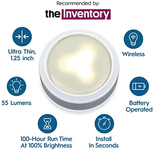 - LONG LASTING BRIGHTNESS – Lasts 4x longer than other puck lights. Operates on 3 AA batteries (18 included).”””