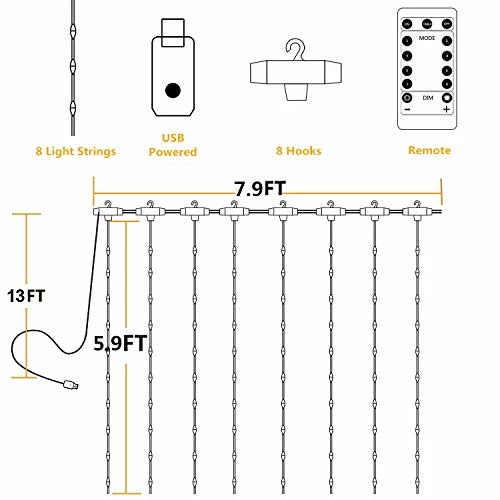 - 8 MODES WHITE CURTAIN LIGHTS — Combination, in waves, sequential, slogs, chasing/flash, slow fade, twinkle/flash, and steady on. Best gift icicle lights for dorm. NOTE: ONLY STRING LIGHTS,NO INCLUDE CURTAIN.