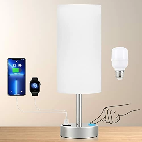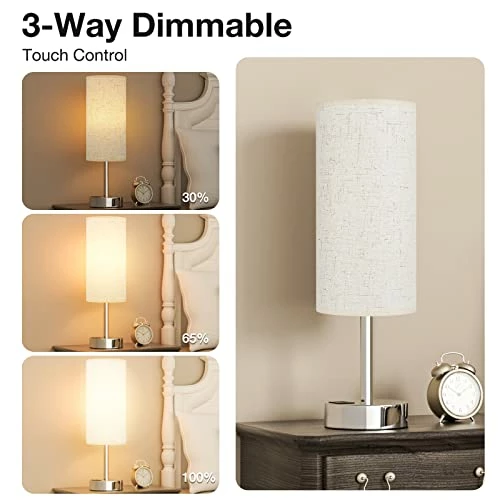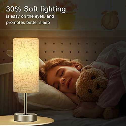 - ?γUpgradeγ γ 3-Way Dimmable Touch Bedside Lamp γ – You can quickly turn on/off and adjust the brightness by touching the base or lamp pole. Very easy to control and suitable for people of any age. You can choose three different brightness (30%, 65% and 100%). It can be used as a night lamp at 30% brightness, 65%/100% is enough to meet your needs for reading, which is good for protecting your eyes and preventing myopia.