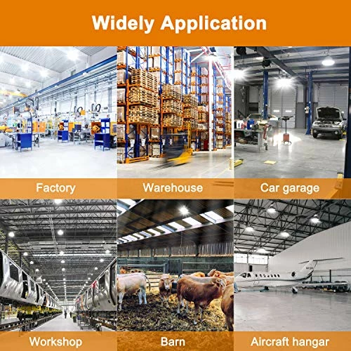 - γWidely Applicationγ- This ufo led high bay light fixture could be used in car garage, workshop, factory, warehouse, pole barn, basement, gym, exhibition hall, shopping malls, stadium and anywhere that need light.