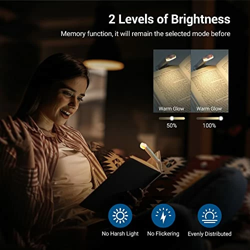 - γ2 Brightness Levelsγ3000K Warm White, LED light can be adjusted 2 brightness levels (100%, 50%) by the button; Eye-care soft glow creates a private reading space for you without disturbing others